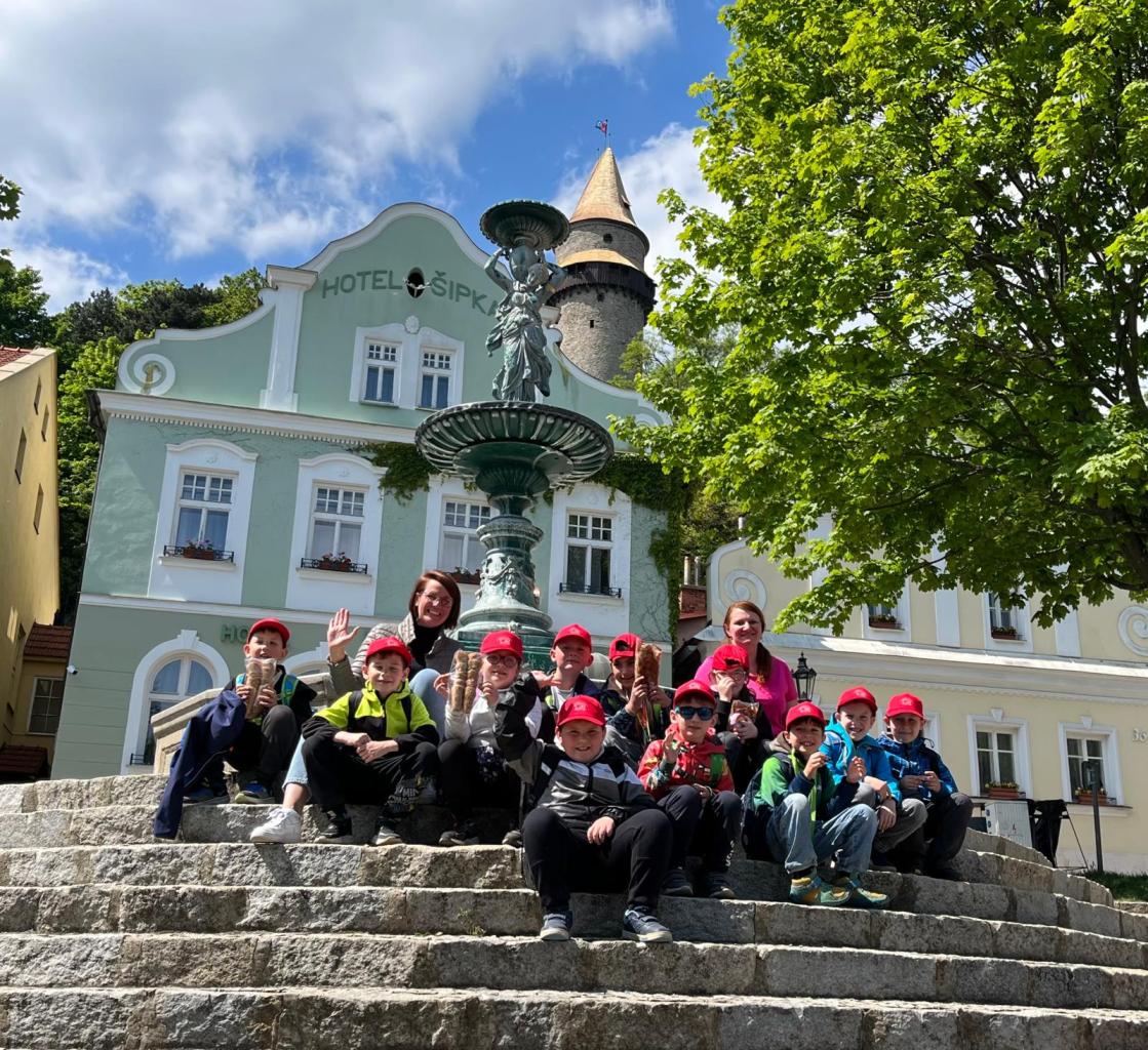 Počasí na 15. května slibovalo krásný den, a tak prvňáčci s úsměvem a očekáváním vyrazili na výlet do Štramberka. Nejdříve jsme měli v plánu prozkoumat jeskyni Šipka, co jsme ale nečekali, bylo setkání s pračlověkem! Po prvotním šoku se s ním děti začaly domlouvat a zjistily, co všechno ve Štramberku je a která místa musíme navštívit.