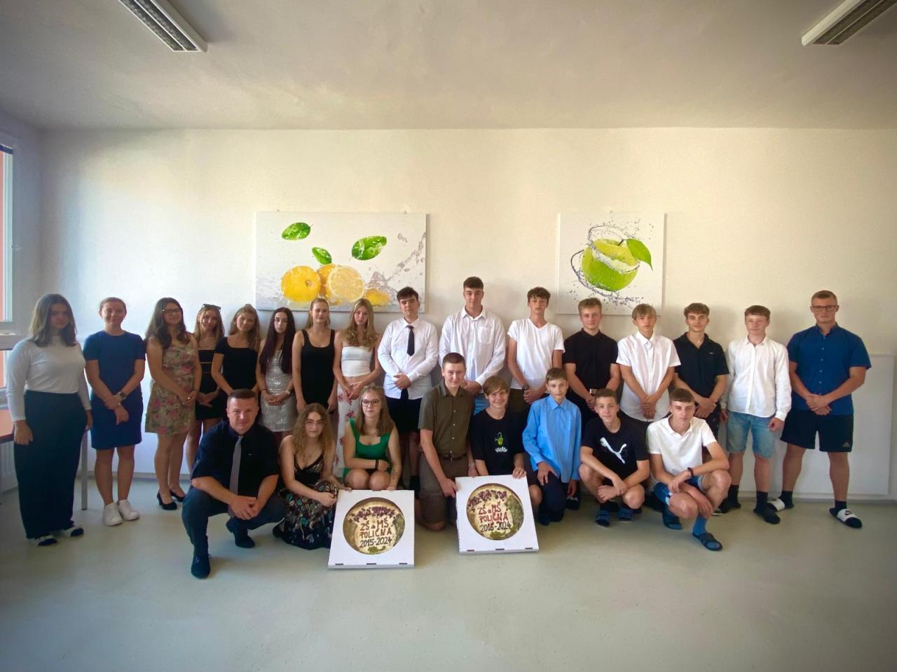 ….A pak už nastal čas rozloučit se s našimi deváťáky. Od vedení školy dostali už tradiční frgál jako symbolický dárek. Pak už přispěchali prvňáčci, aby je chytili za ruku, popřáli jim hodně štěstí v dalším studiu a vyprovodili je do nové životní etapy.